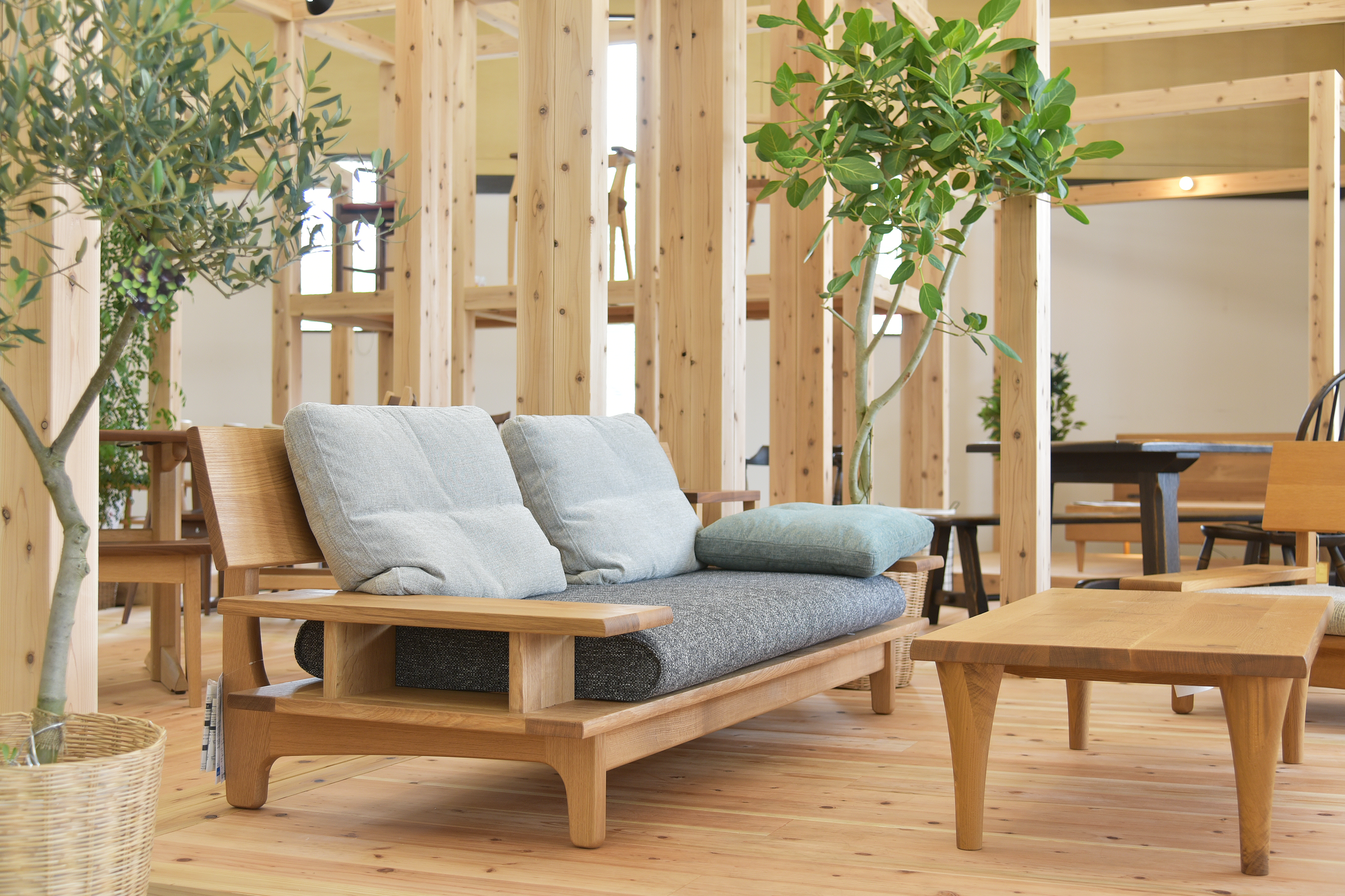 飛騨地区最大の家具の売場に常時ソファ100台、ダイニング70セット、ベッド50台以上を展示しています。