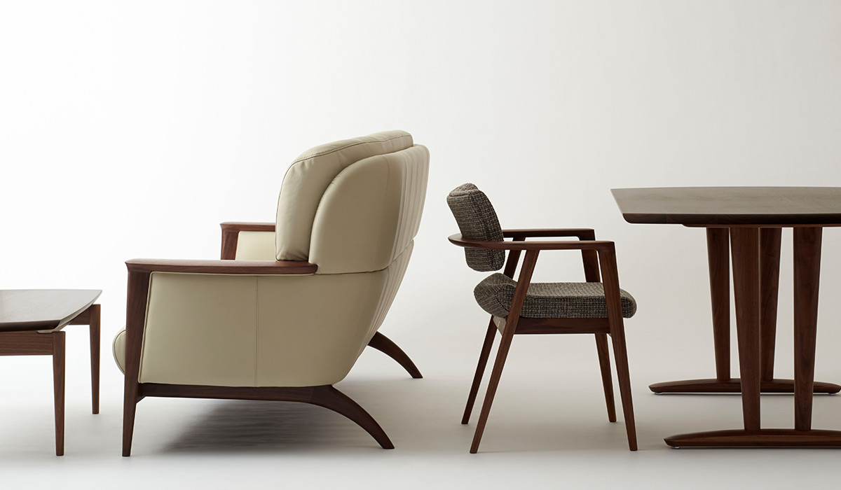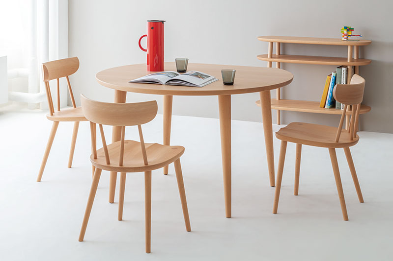- 特徴は曲げ木の独特の高い技術に、天然木の風合いや温もりを活かした、美しくも暮らしに根ざしたデザインの家具です。