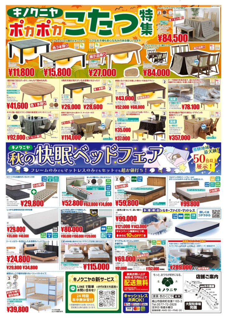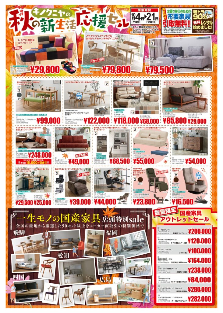 日が落ちるのも早くなりすっかり秋らしくなりました。さて10月4日に朝刊折り込みチラシをお送りしております。
