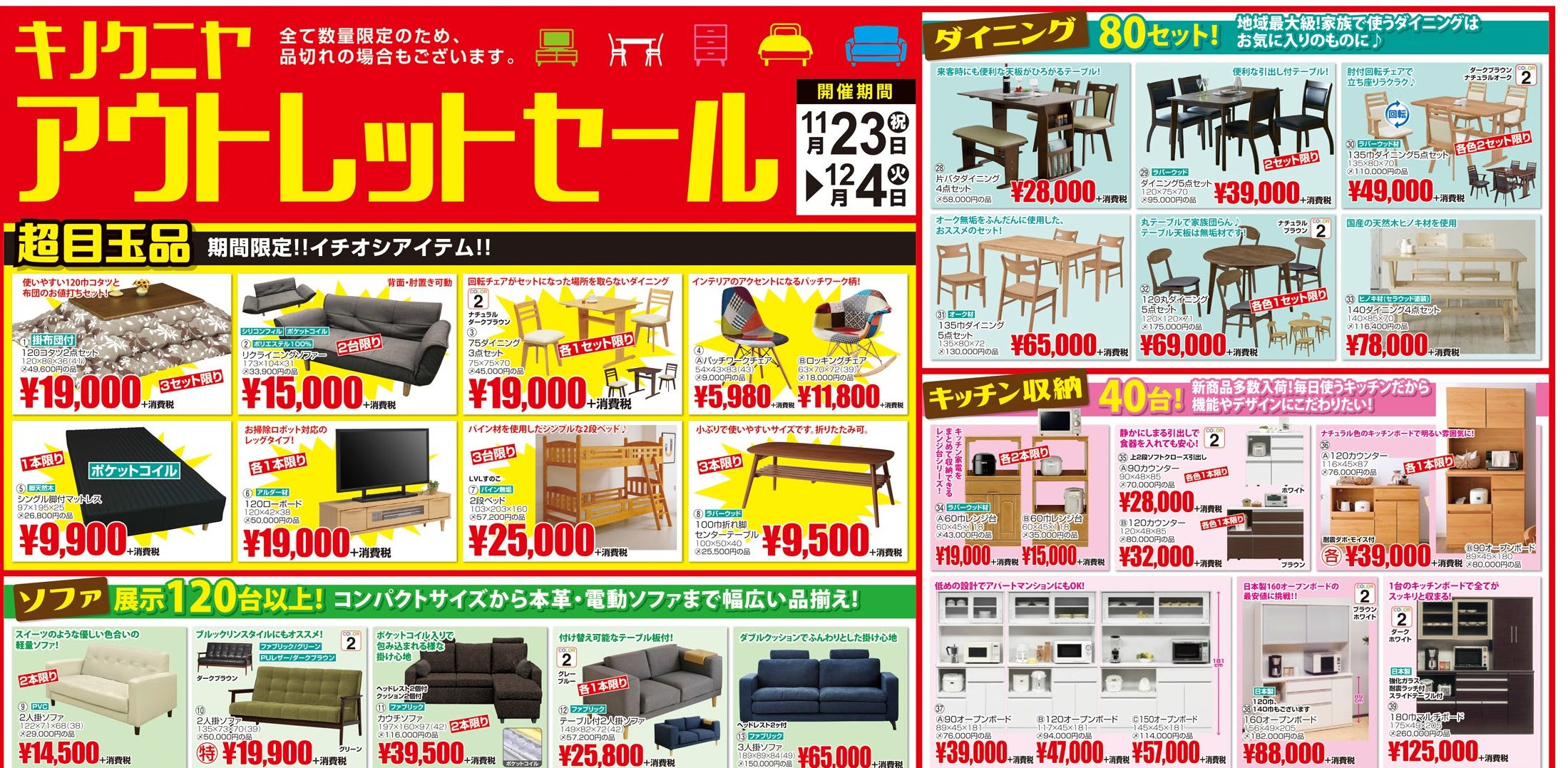 そしてソファはチラシ掲載以外にも100アイテムほど展示ございます。
