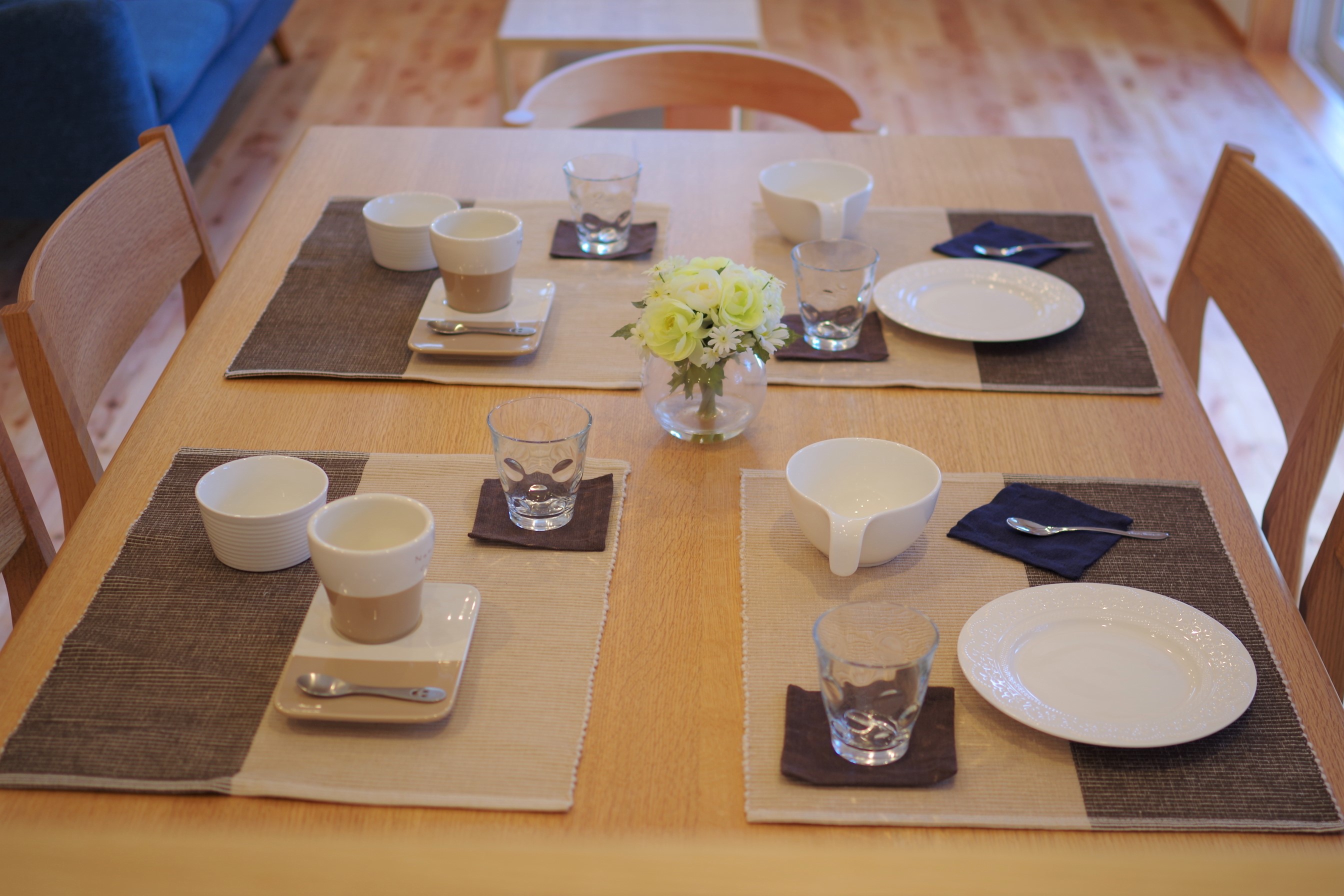 気持ちのいい無垢の床に、最初に目につくのがダイニングセットです。