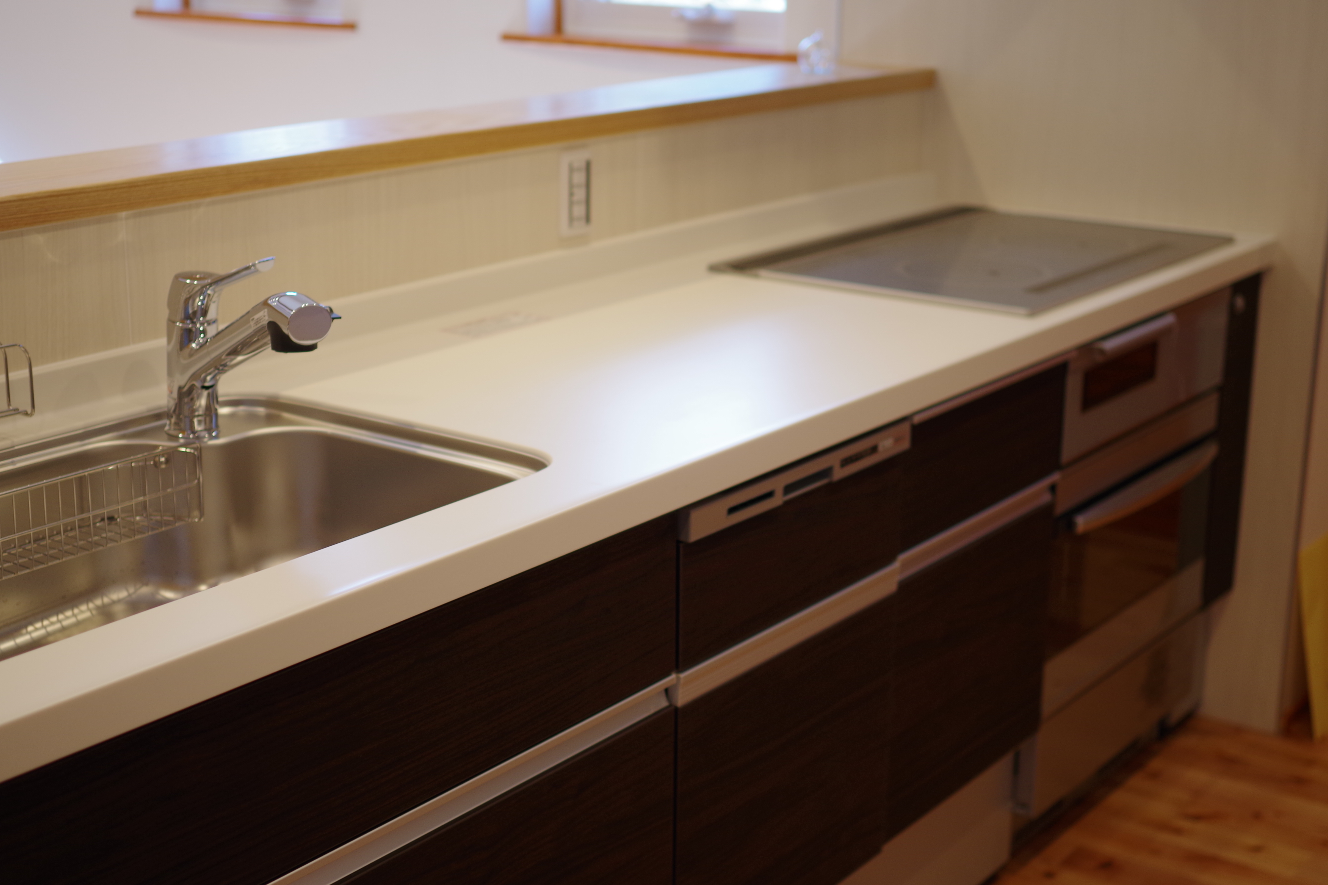 ▲キッチンの真正面の壁はテレビ台に。テレビを見ながら家族みんなで会話ができそうですね。