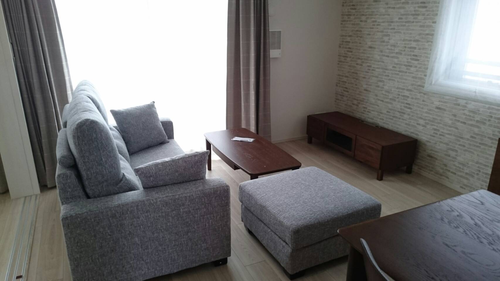 ソファはグレイにして落ち着いた印象に。今後クッションを季節ごとに変えたり、色を入れることでお部屋にアクセントが付けやすくなります。