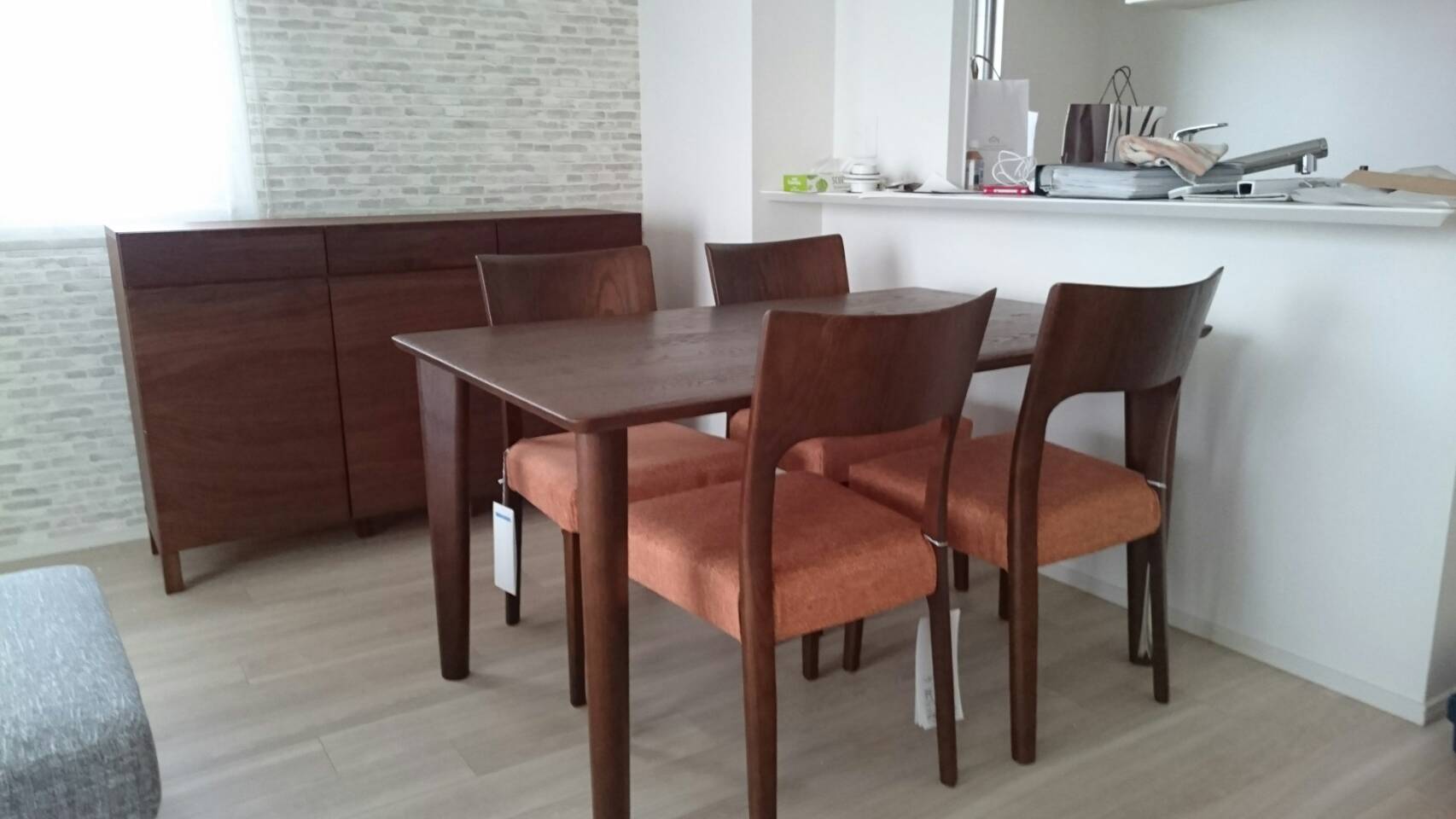 お客様の要望を踏まえて、全体的にウォルナットを中心としたダーク色の家具で統一させて頂きました。