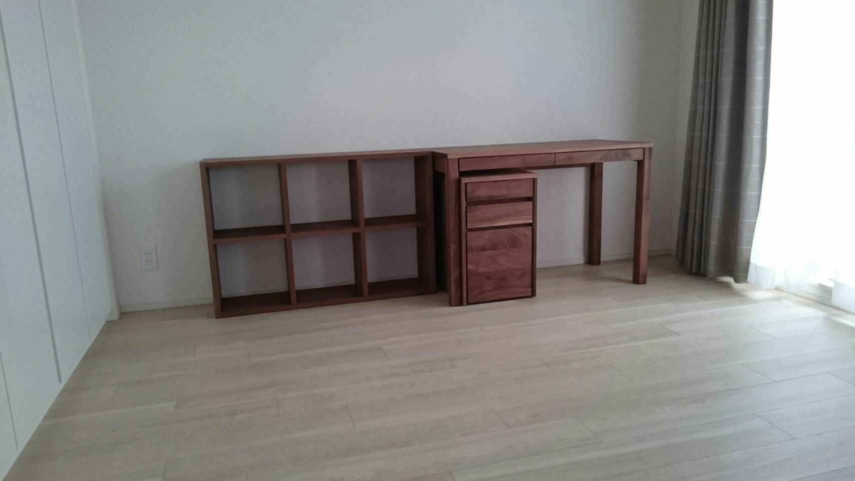 書斎には福岡で作っているウォルナットのデスクと棚を納品しました。