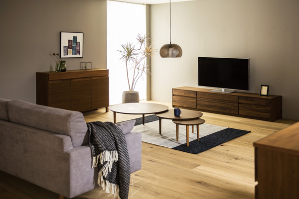 飛騨の家具と比較すると無垢材よりも突板をうまく使うことで、値段を抑え、使いやすい商品が多いです。
