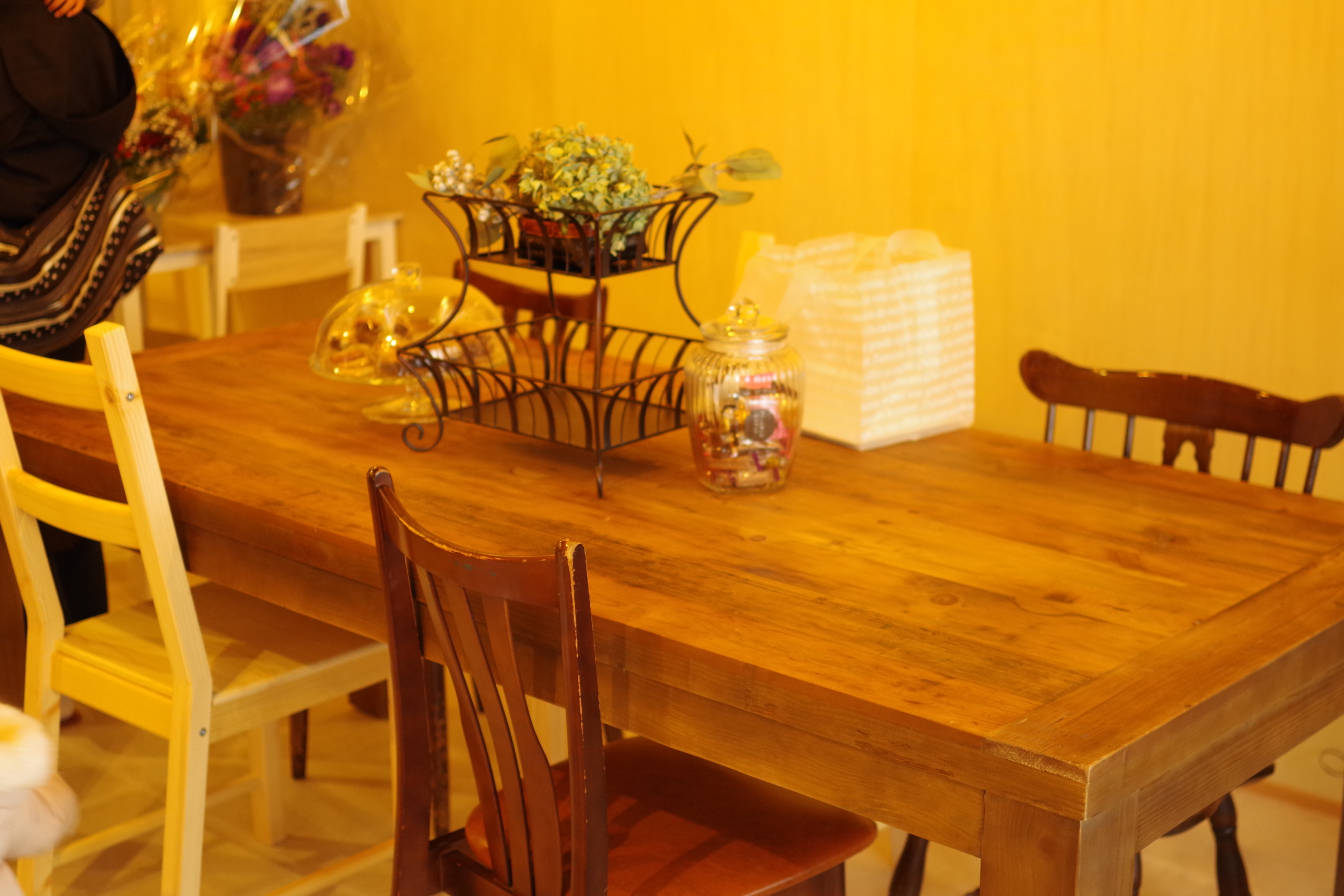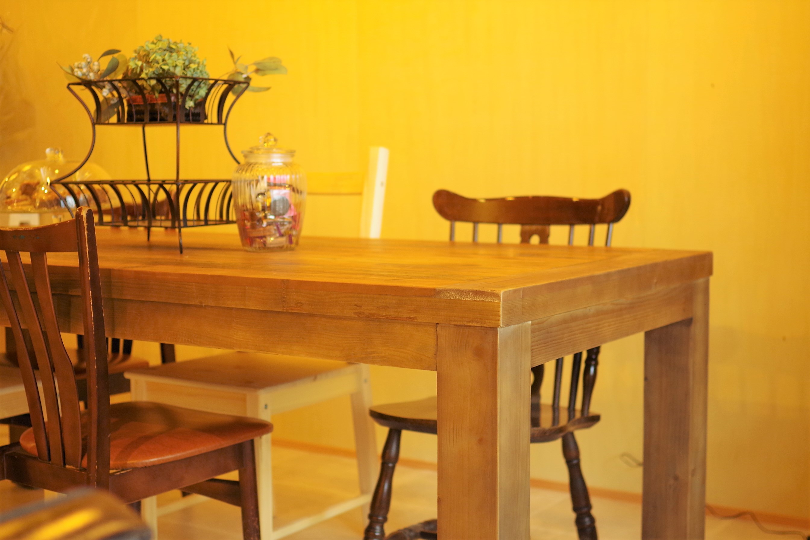 ノスタルジックな雰囲気漂うお店に、古材を使った家具がとても映えます。