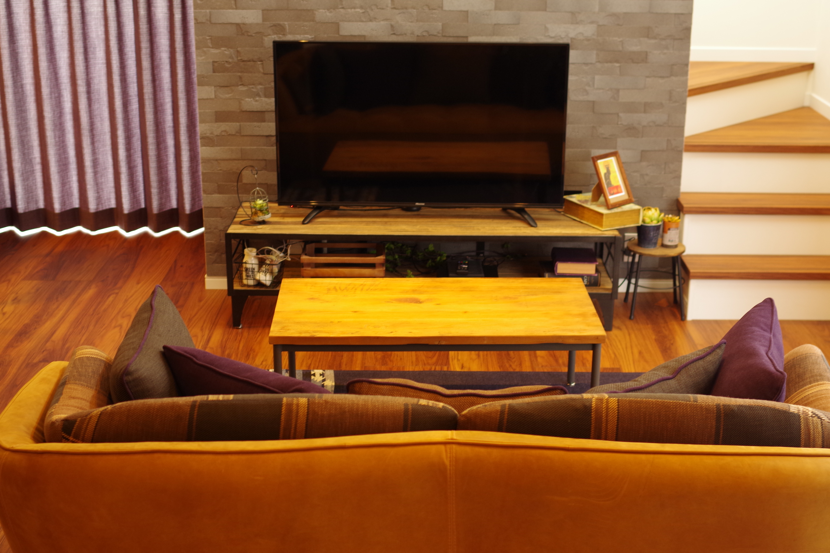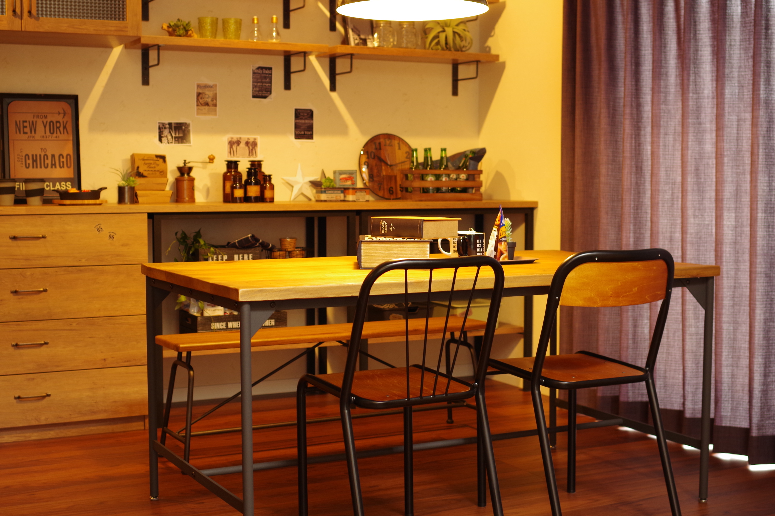古木や節の入った材などを中心にスチールと組み合せて無骨なインダストリアルな雰囲気に仕上げたシリーズ。